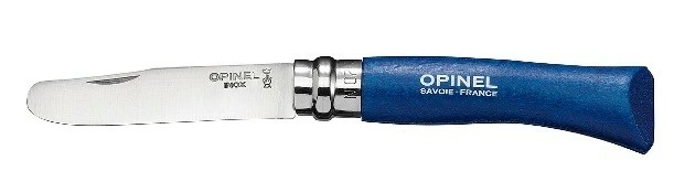 Σουγιάς Νο 07 με λαβή από ξύλο οξυάς σε χρώμα μπλε και στρογγυλή λάμα Inox. Ο ειδικός σουγιάς για παιδική χρήση. Ιδανικός σύντροφος στις περιηγήσεις, το πικ-νικ, την κουζίνα, την κατασκευή μακετών, τα μαστορέματα, την ξυλογλυπτική, την κοπή ξύλου και σπάγκου.